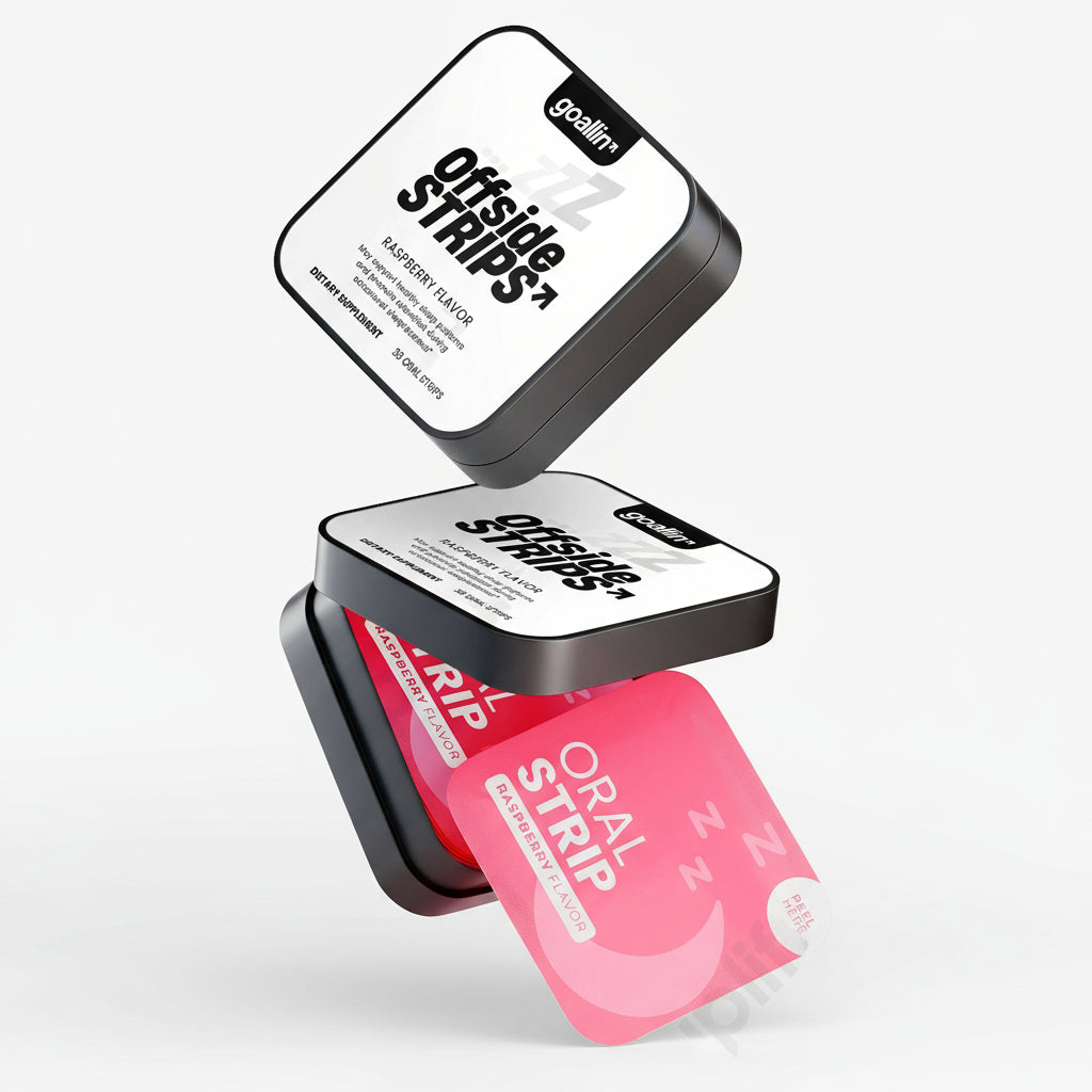 When the game stops, recovery begins. Offside is your go-to sleep strip — fast-acting, clean, and built for players who never slow down. Designed to melt on your tongue, it helps you unwind, fall asleep faster, and wake up ready for the next session.